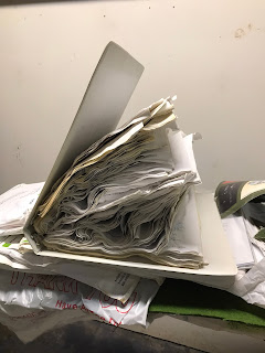 This afternoon I looked over my mostly dry papers, 20 to 30 years old. I’m trying to smooth them out. This time around I’ll be smart and store them in plastic bins, away from any watery threat. As an obsessive self-chronicler, I’m not going to let something like a basement flood keep me from my materials. There’s still literary gold in those stained, slightly soggy pages. From the grit of the flood comes the essay.